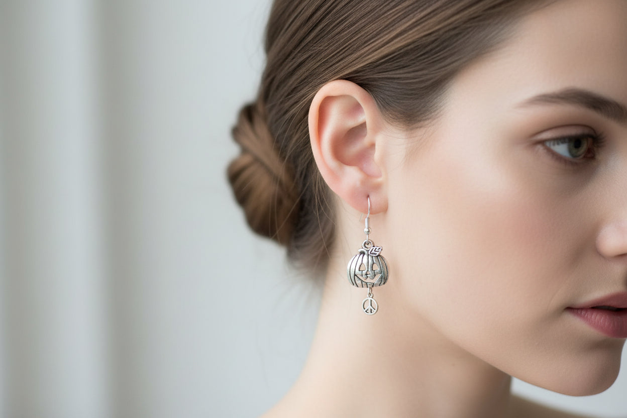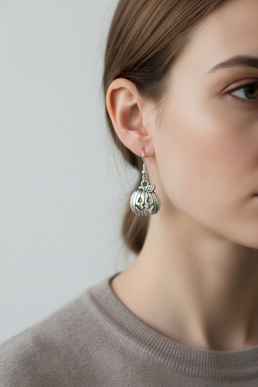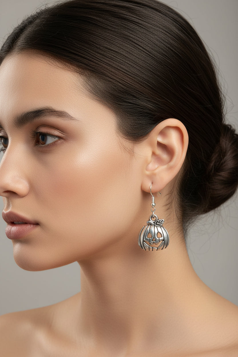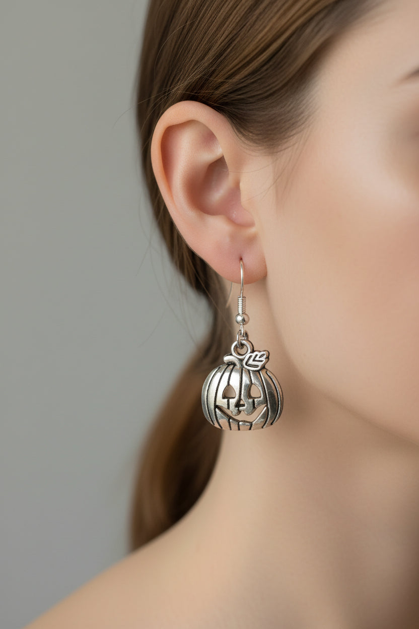 Antique Finish Jack O' Lantern Earrings, Halloween Jewelry