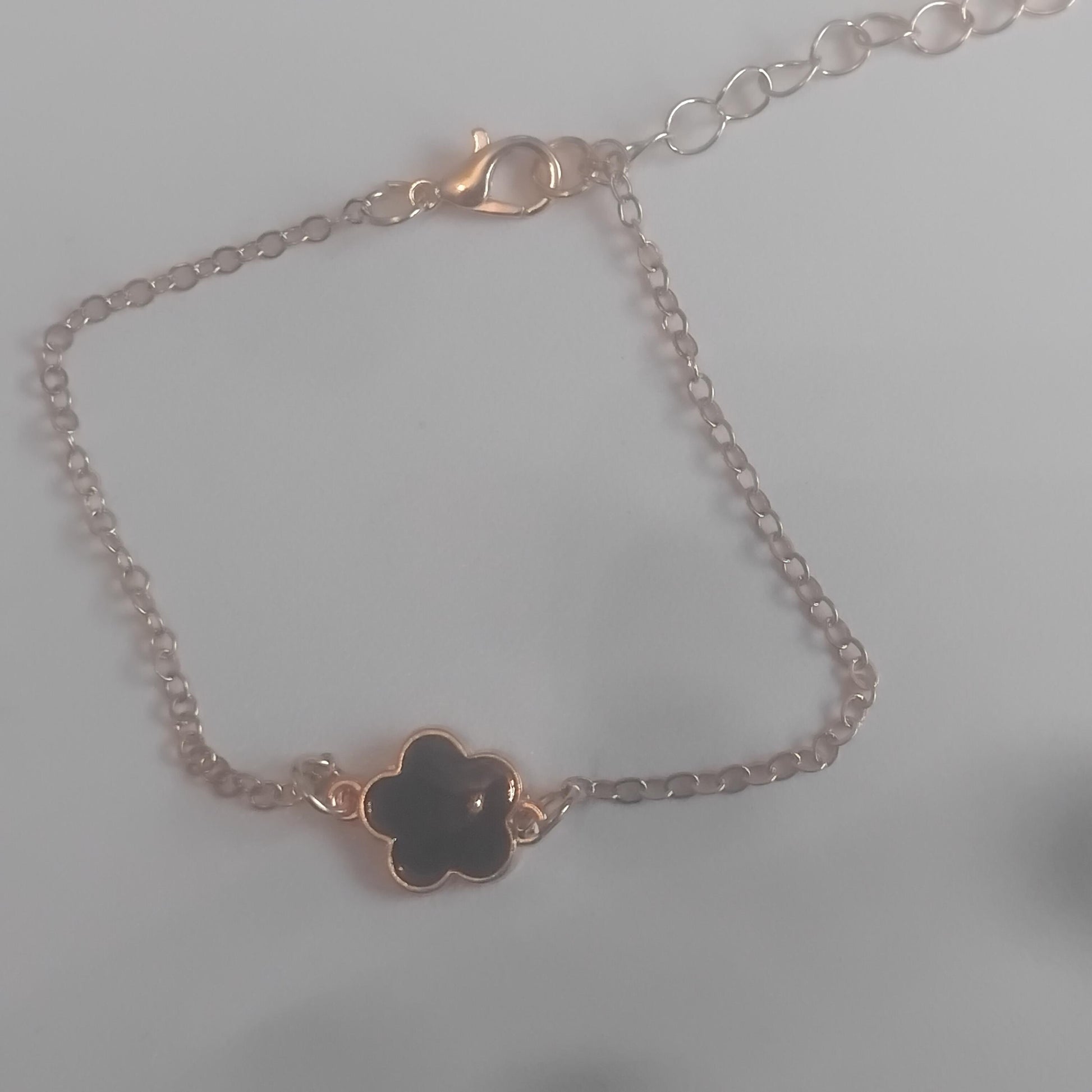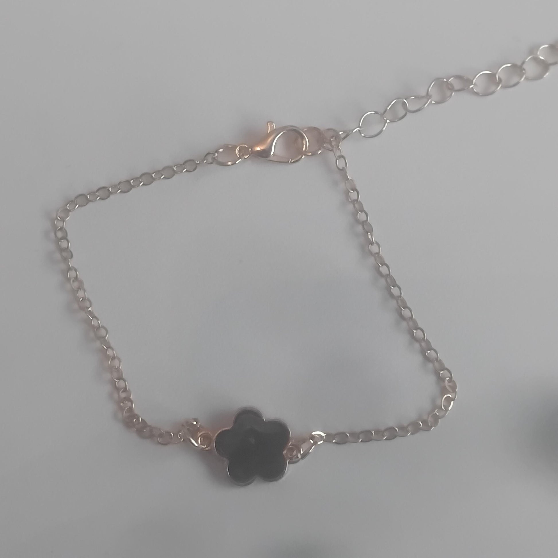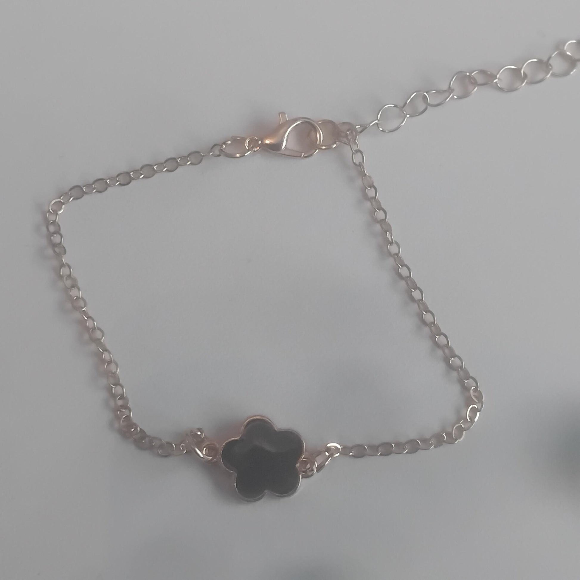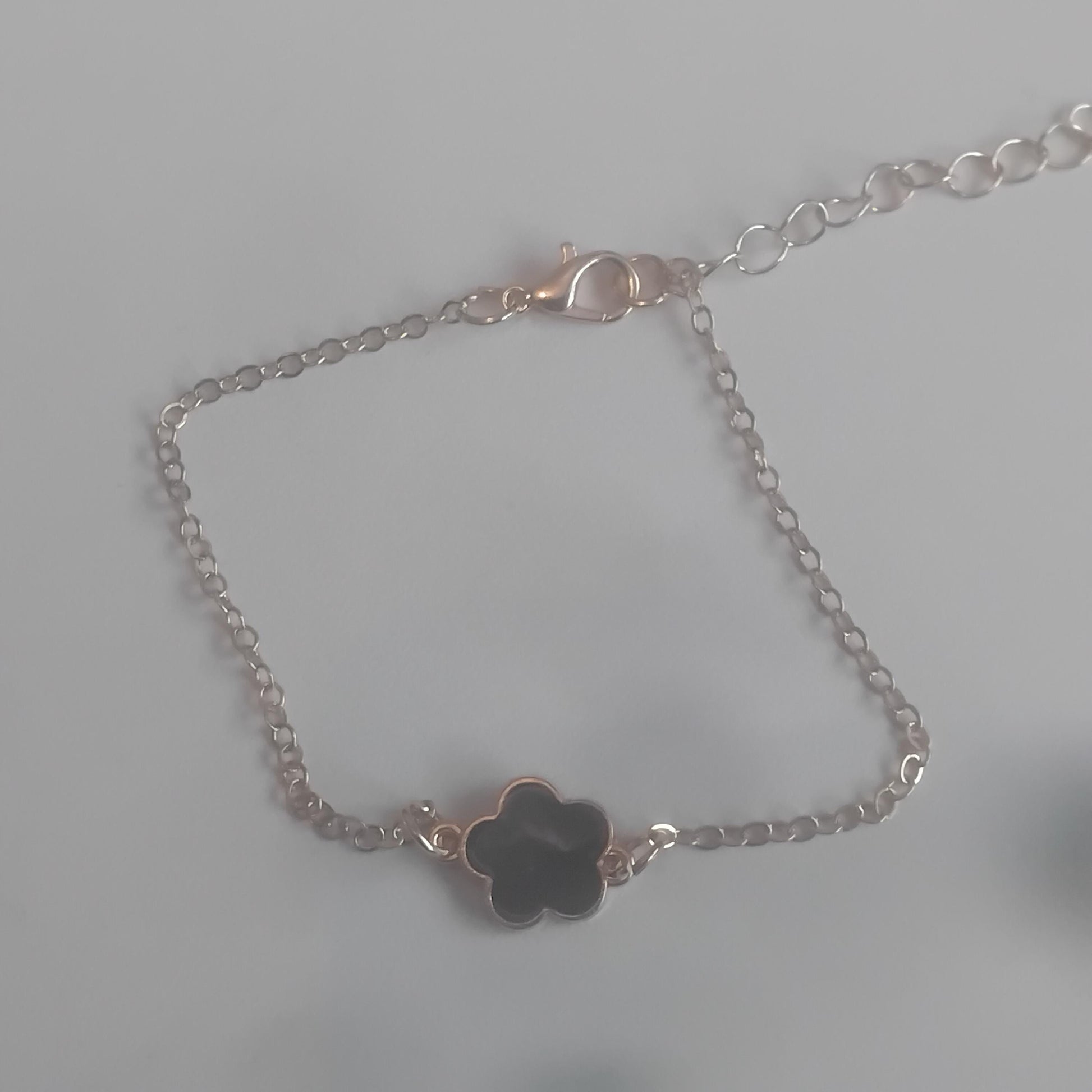Black Flower Charm Bracelet, Delicate Five-Leaf Design