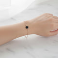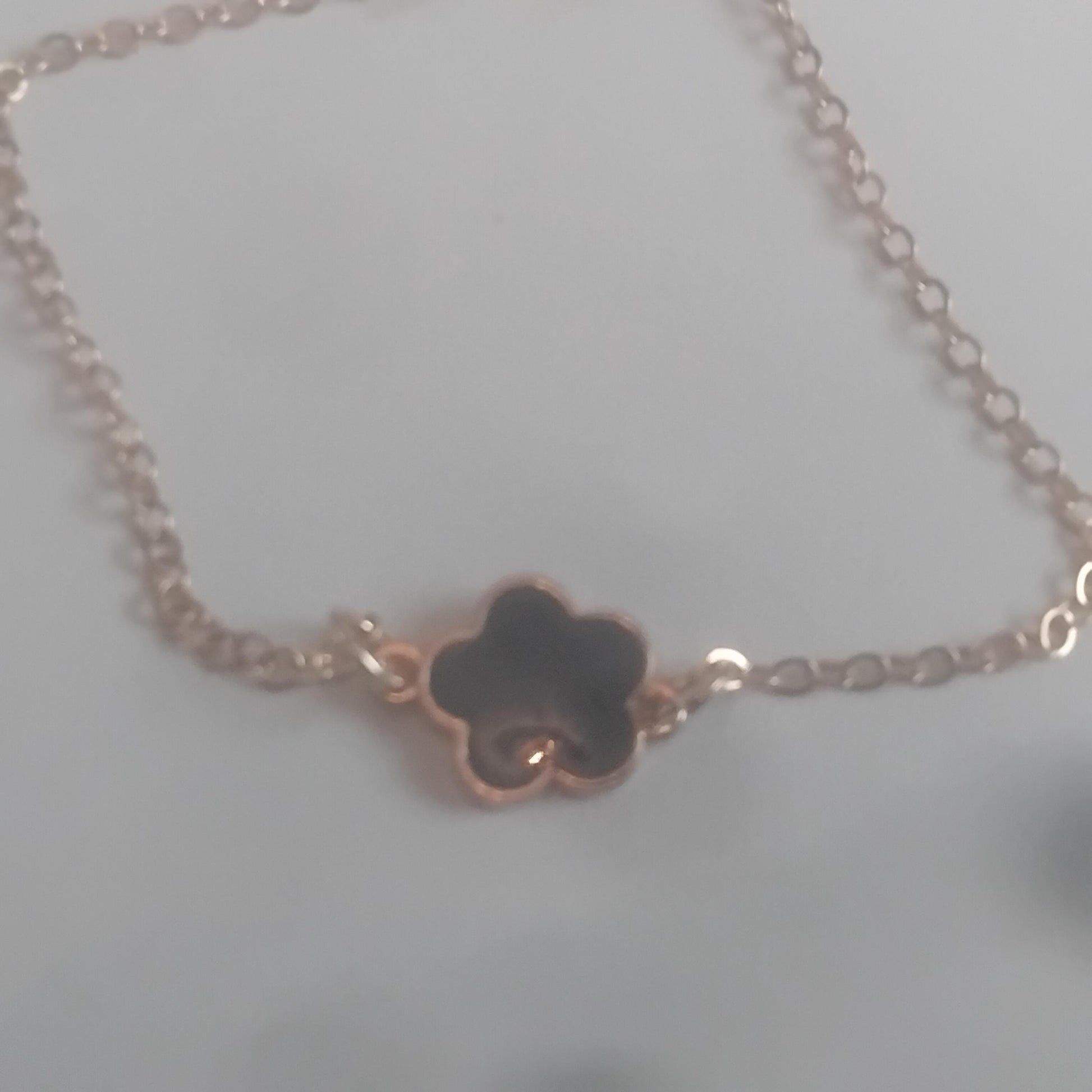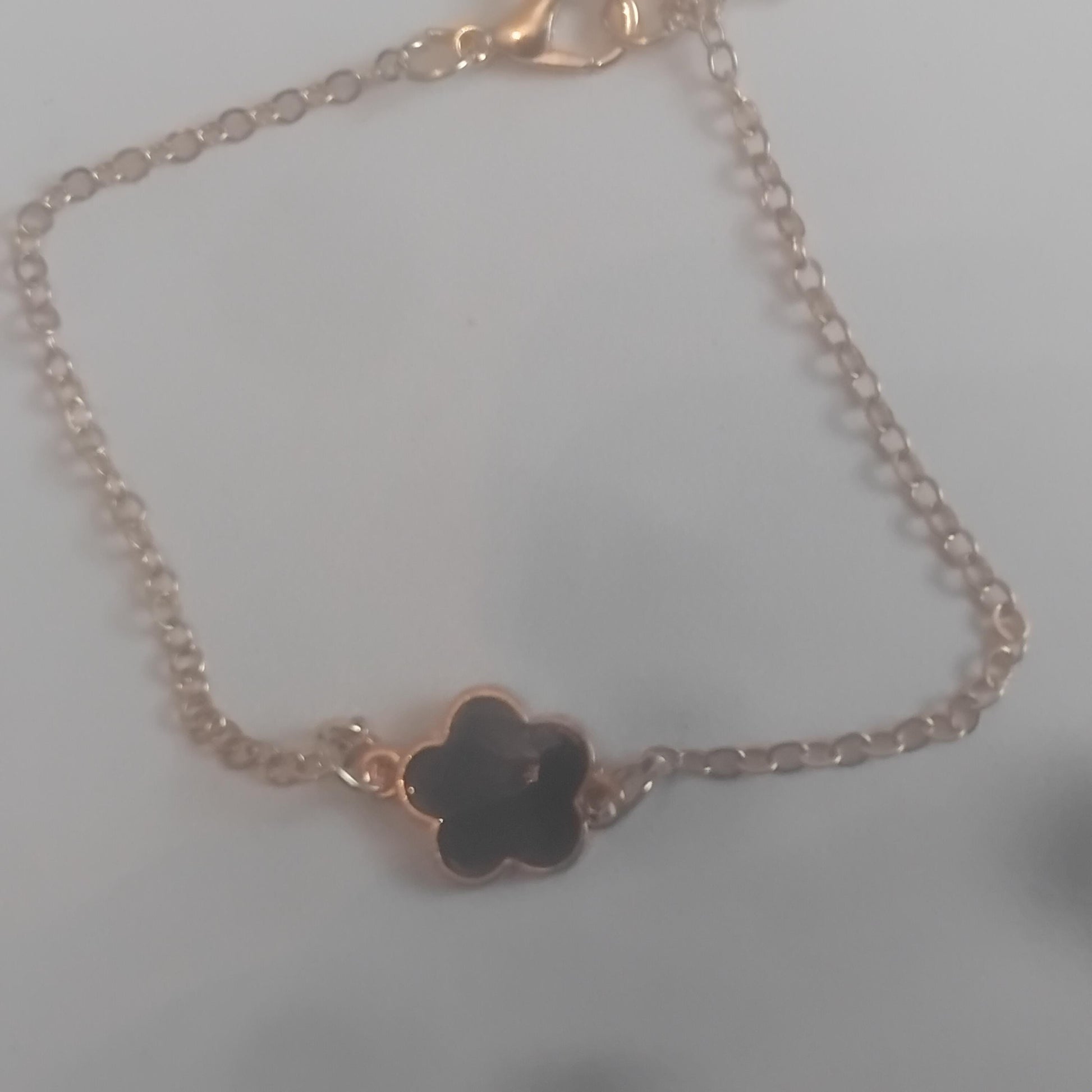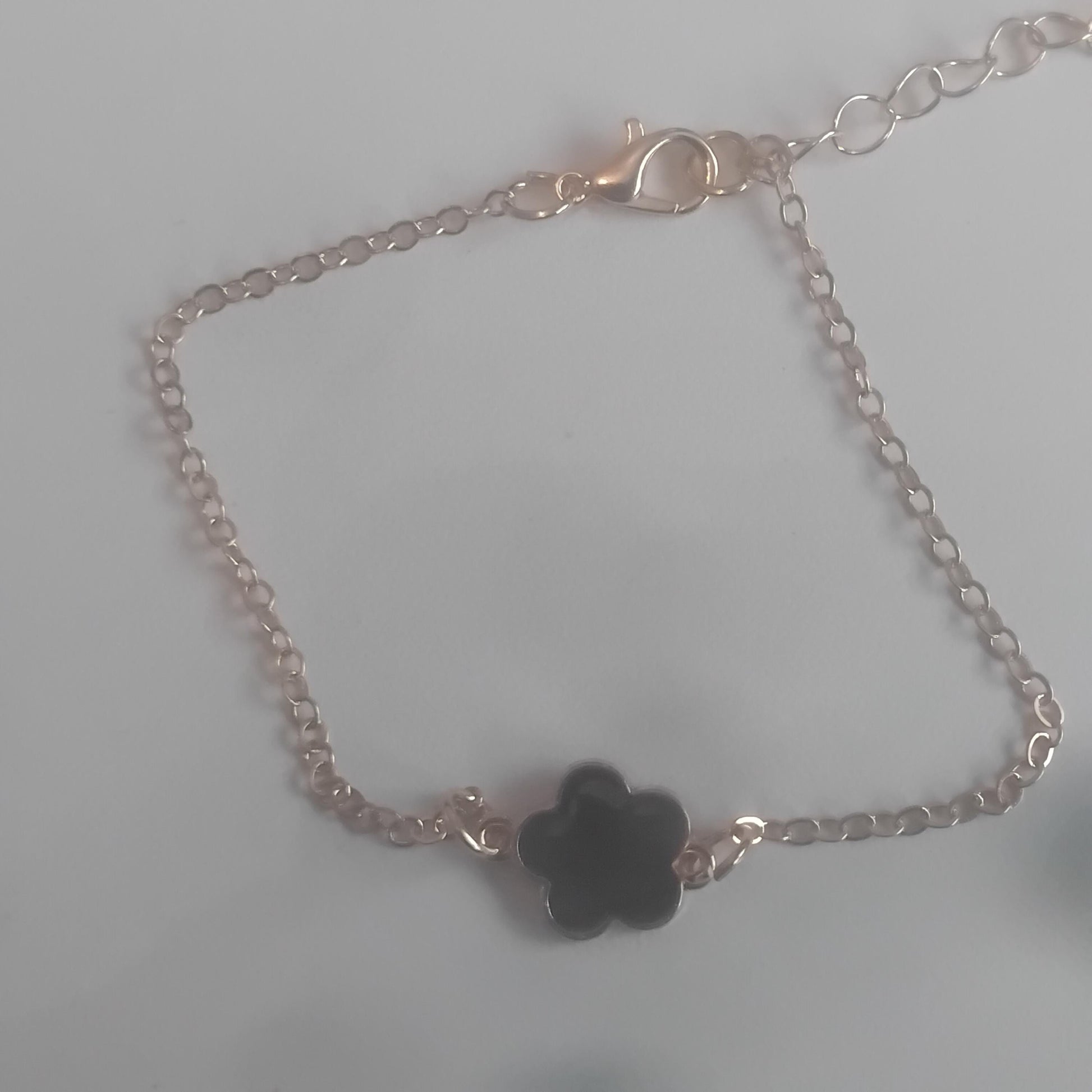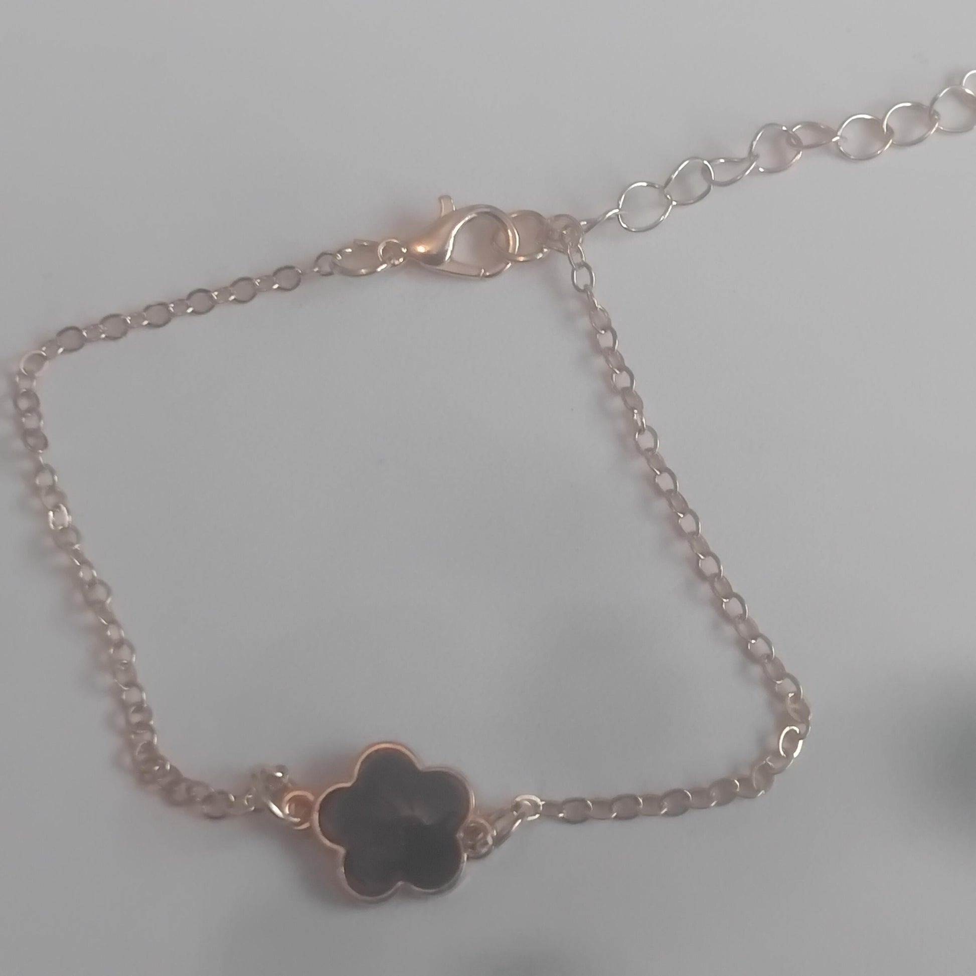 Black Flower Charm Bracelet, Delicate Five-Leaf Design