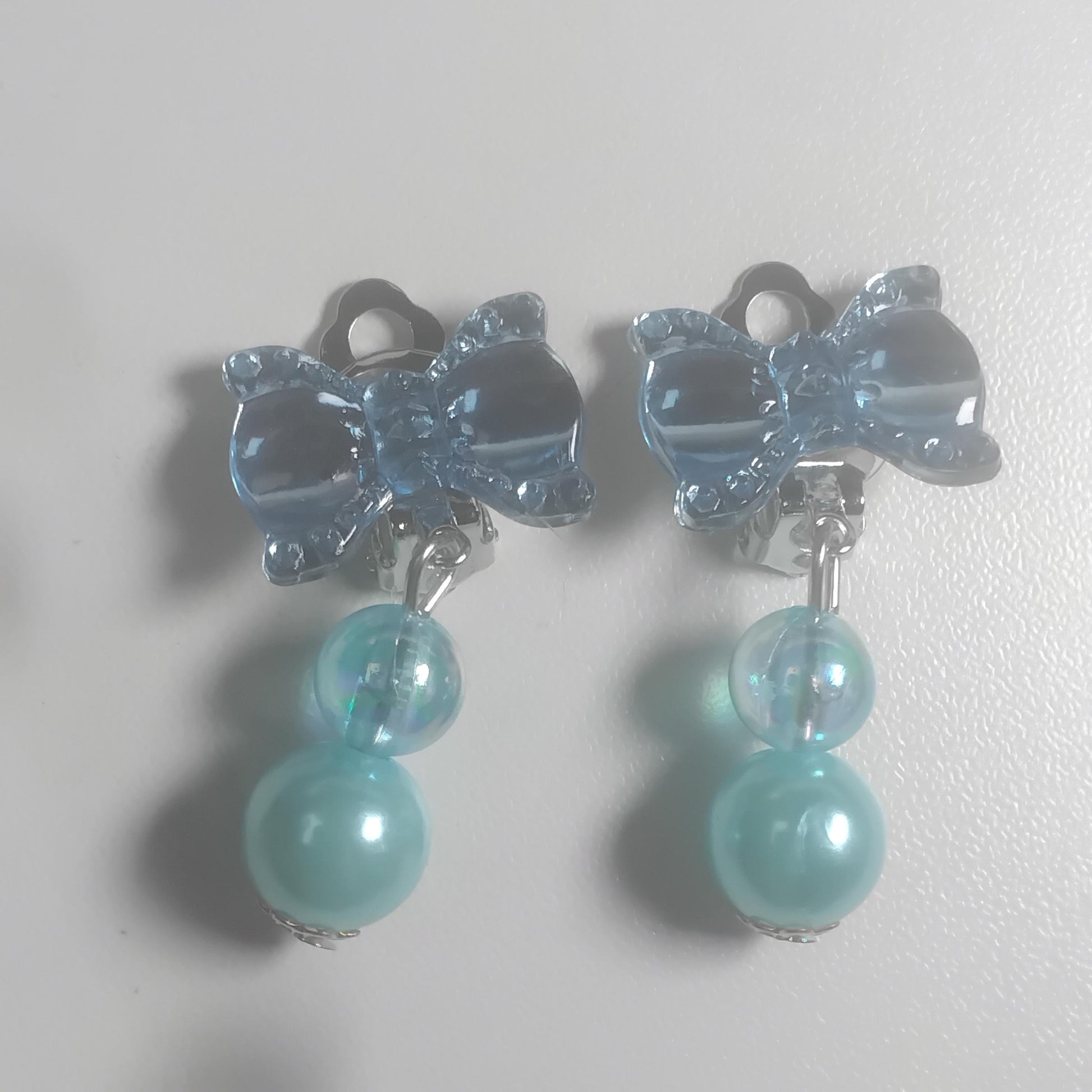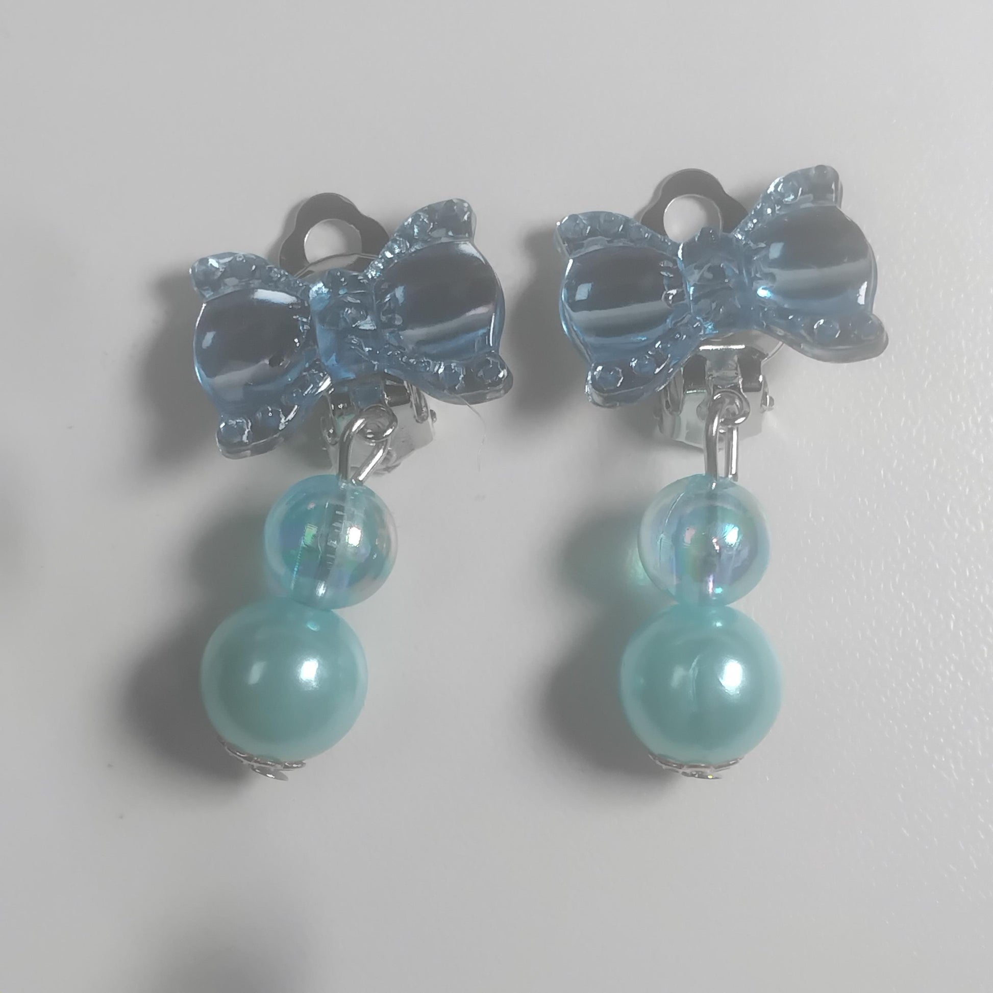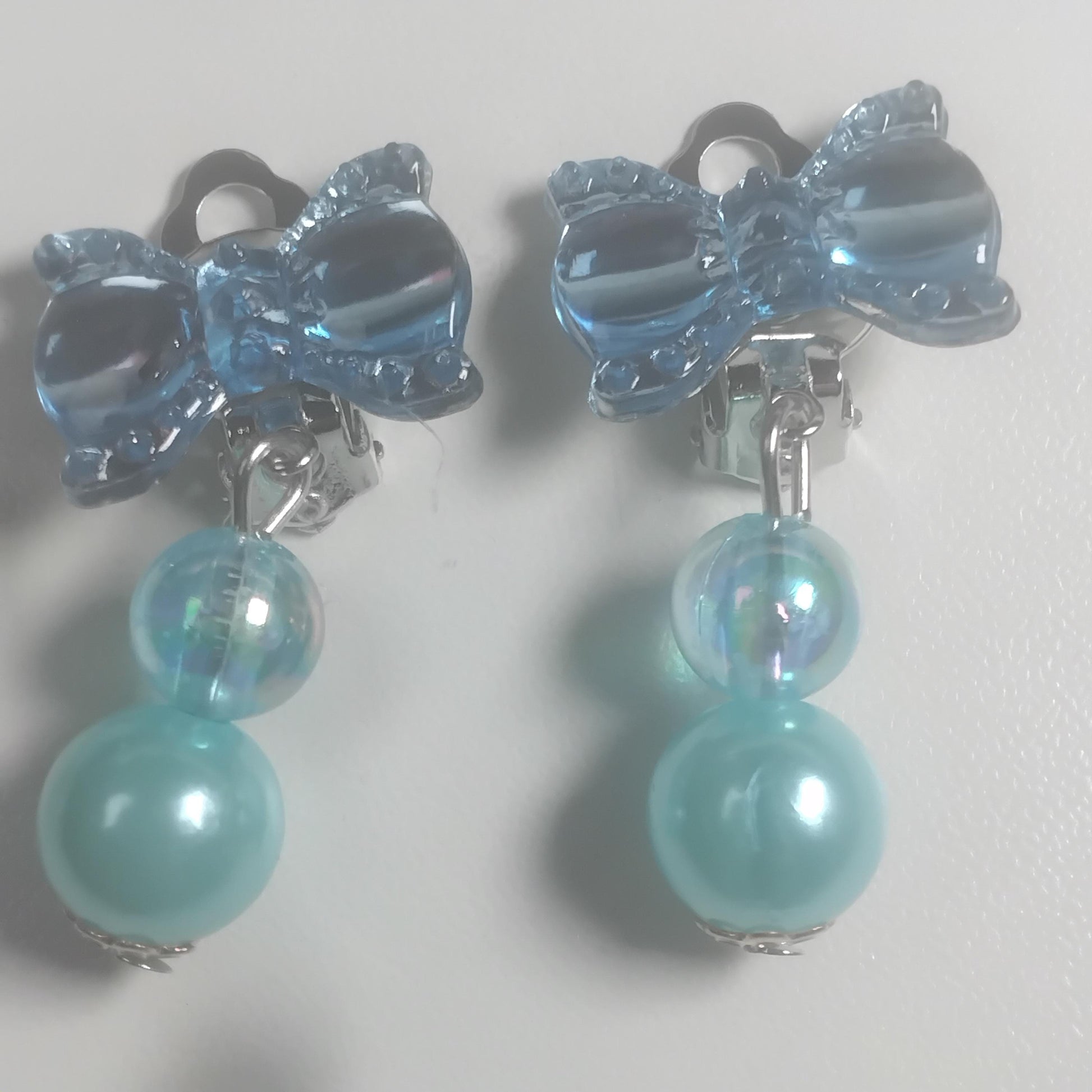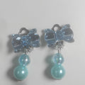 Blue Glass Bow Clip-On Earrings - Non-Pierced Jewelry
