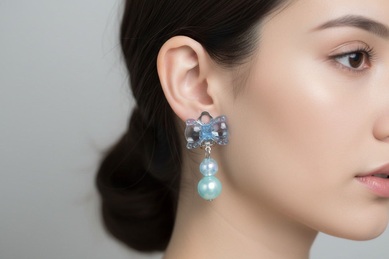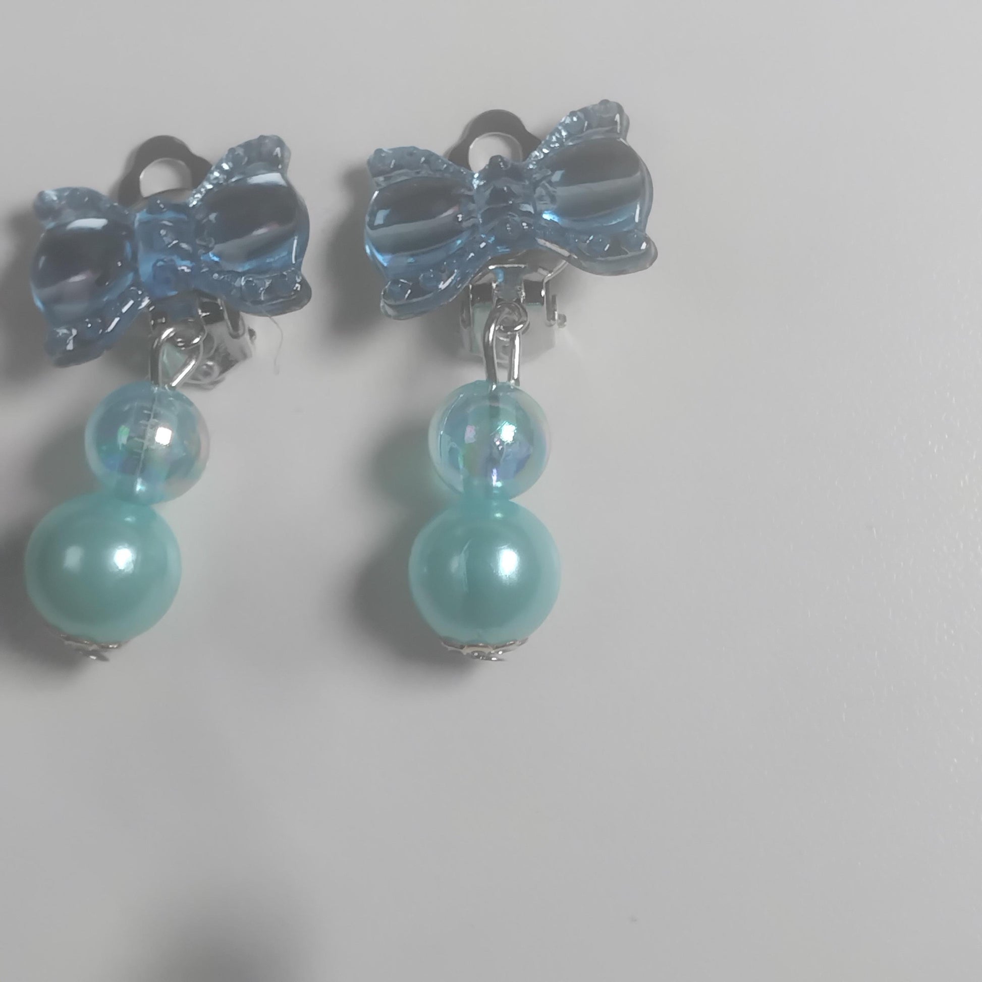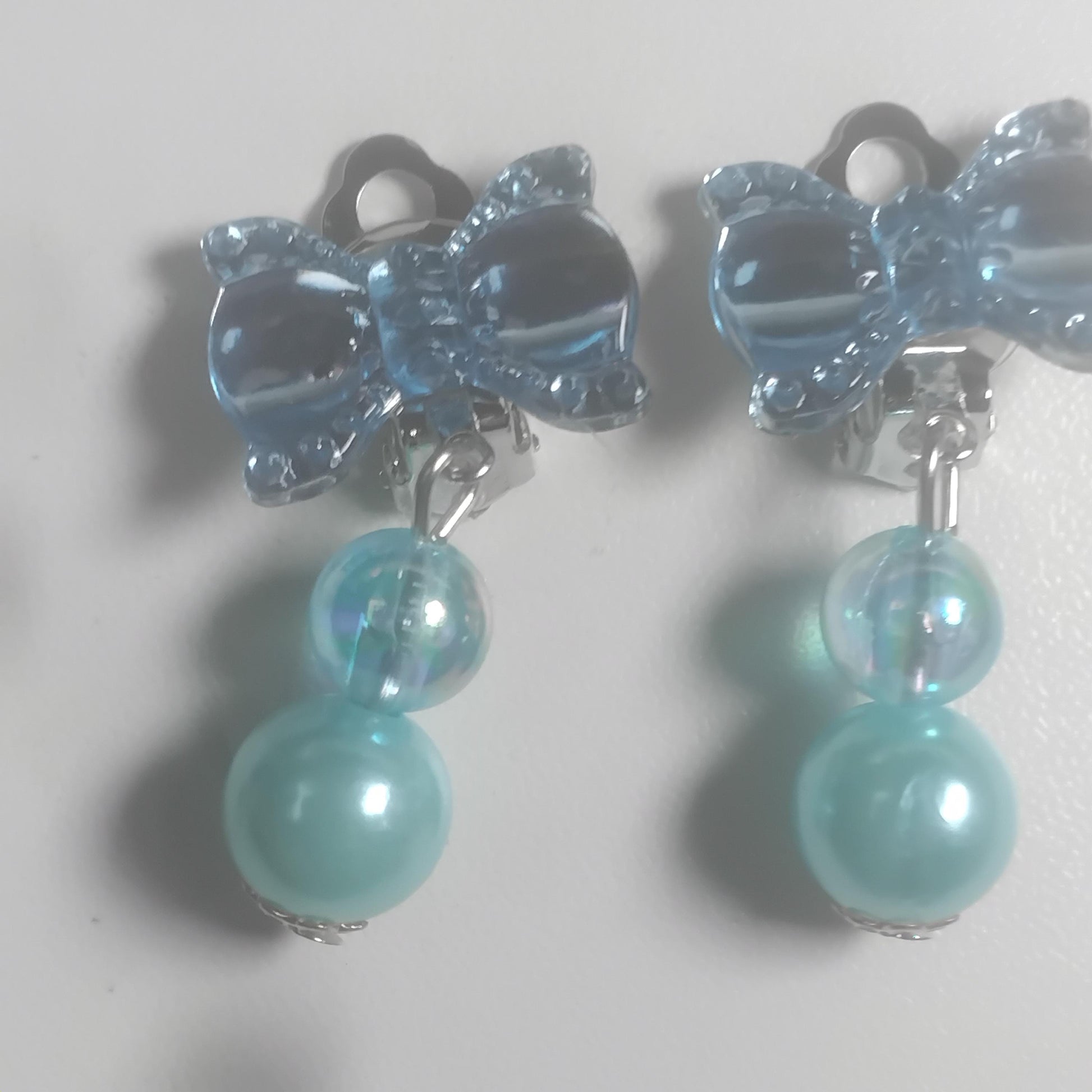 Blue Glass Bow Clip-On Earrings - Non-Pierced Jewelry