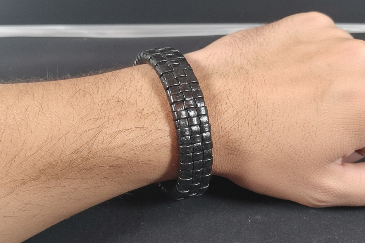 Braided Black Leather Bracelet - Men's Jewelry Gift