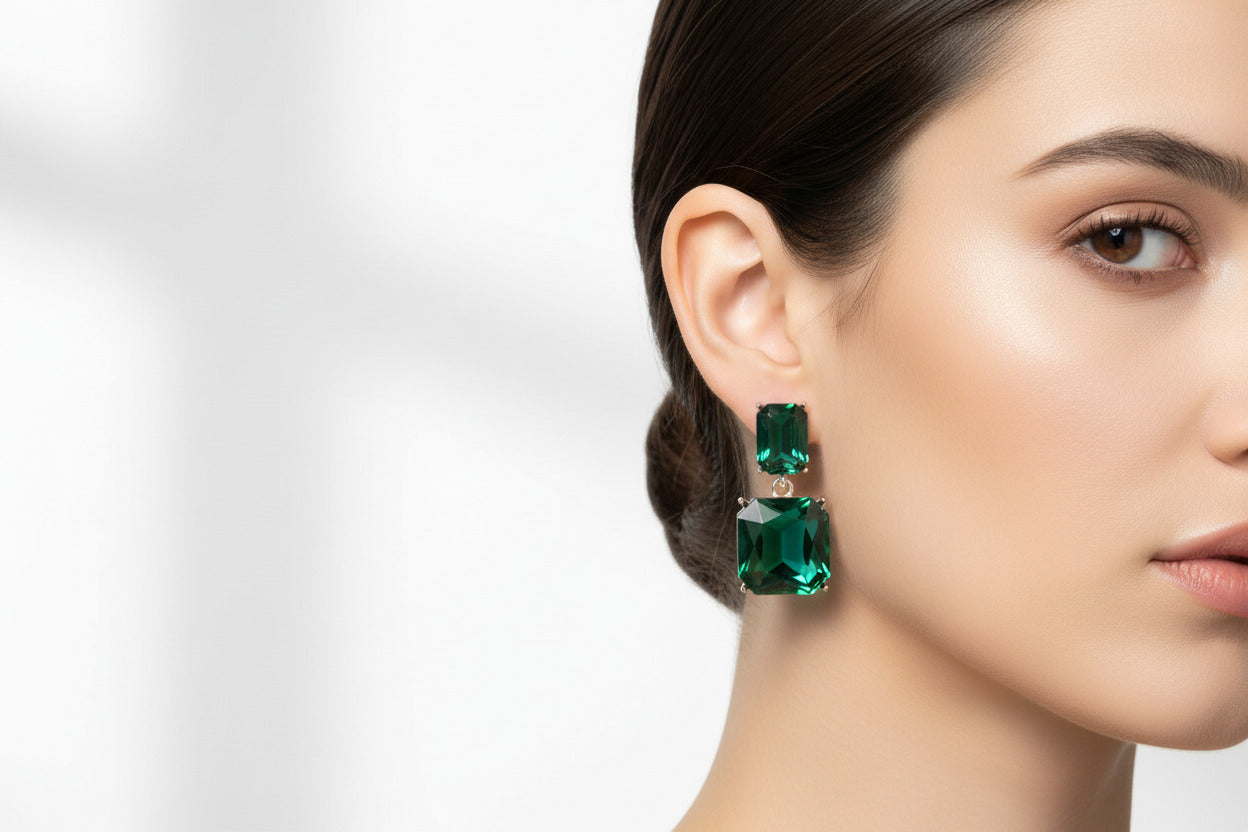 Emerald Green Teardrop Earrings | Dangle Style,