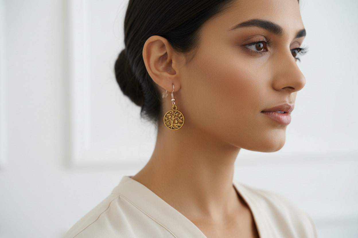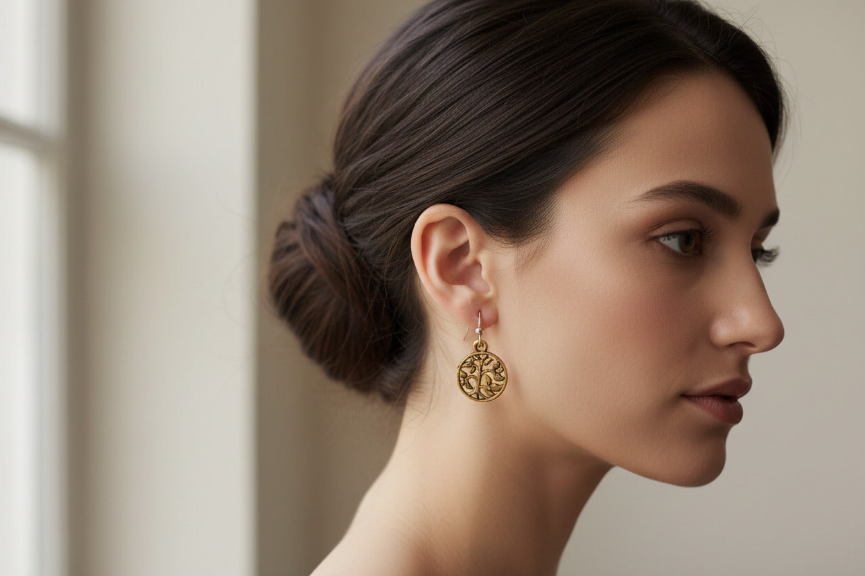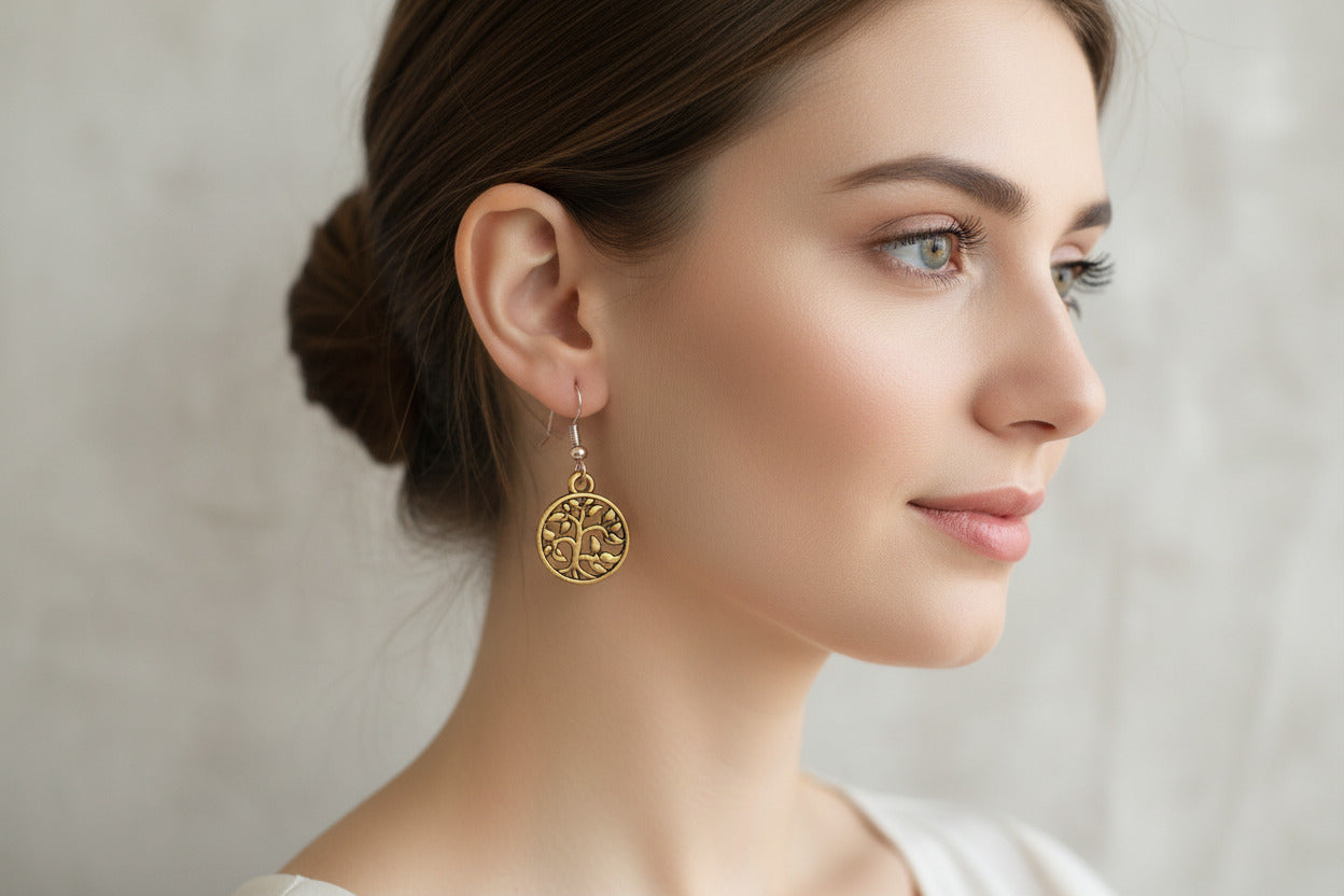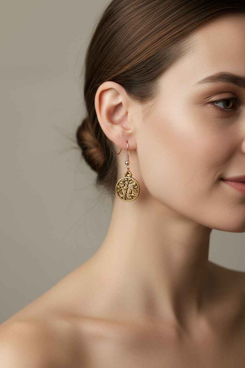 Gold Tree of Life Charm Earrings, Wedding Jewelry