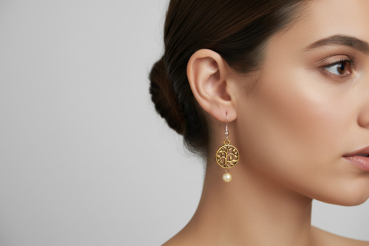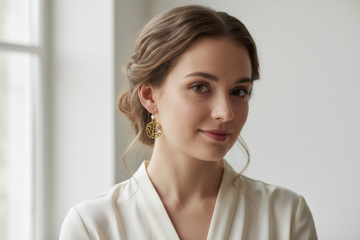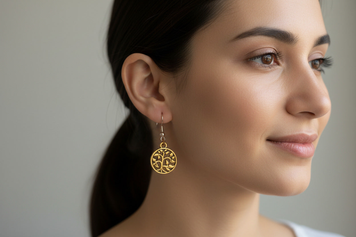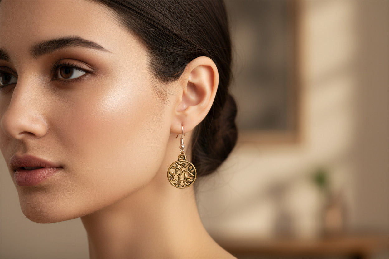 Gold Tree of Life Charm Earrings, Wedding Jewelry