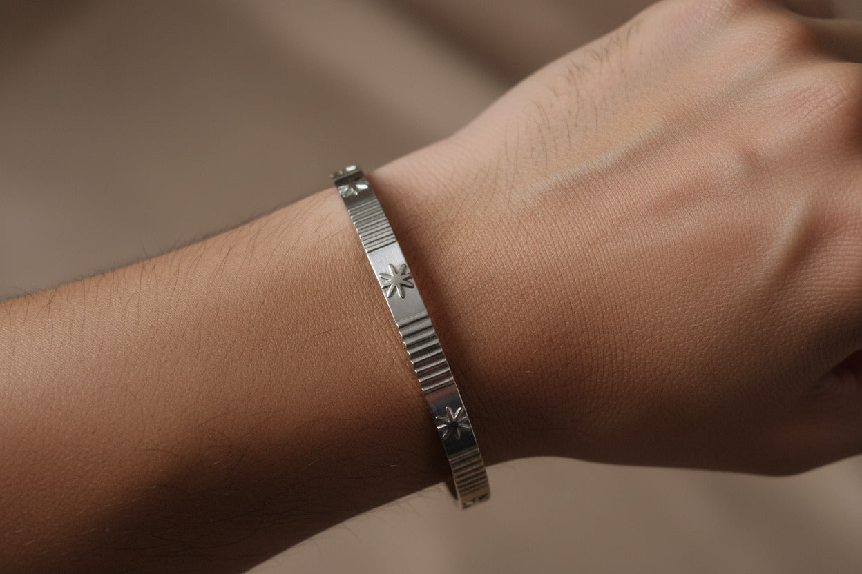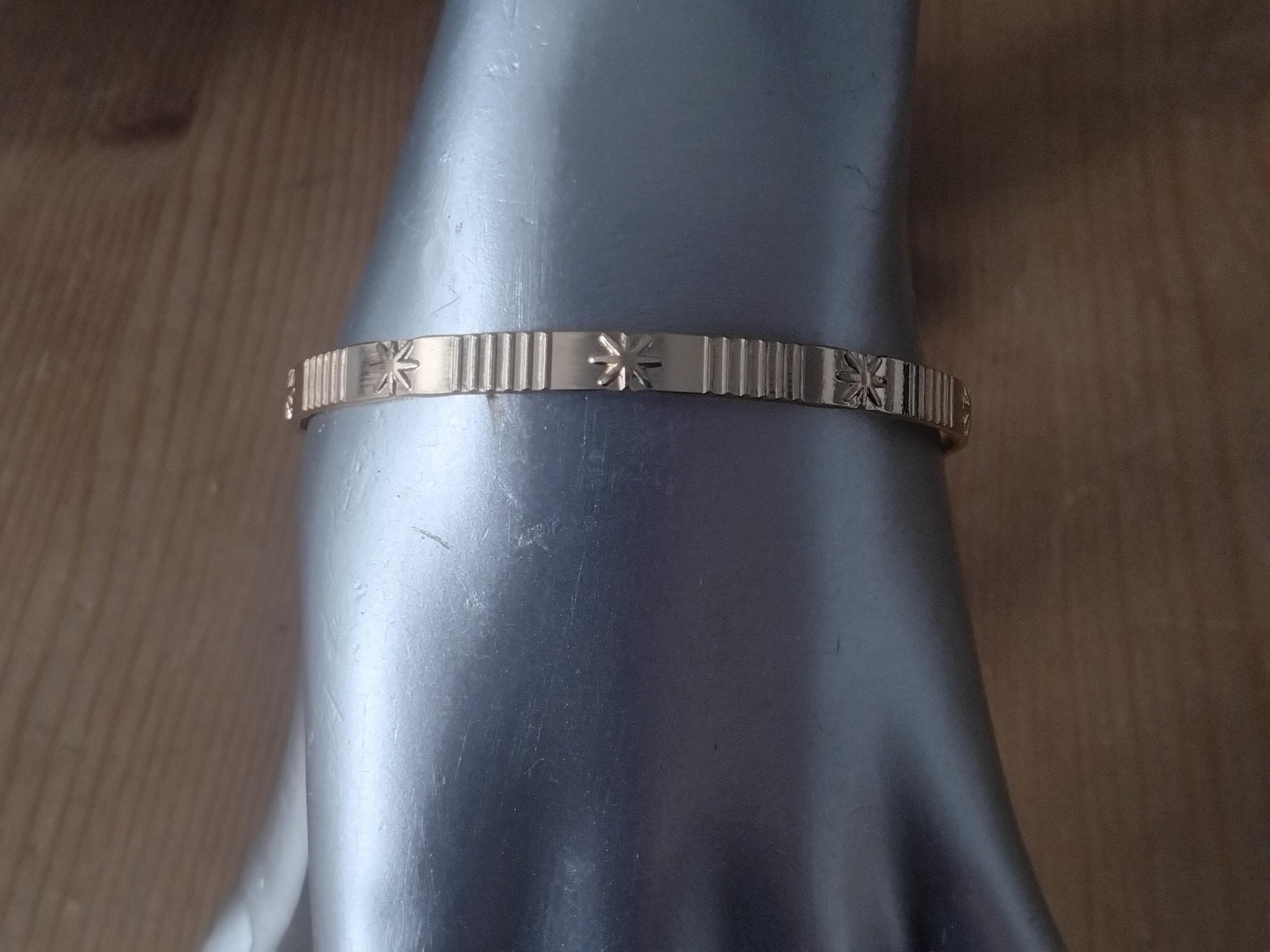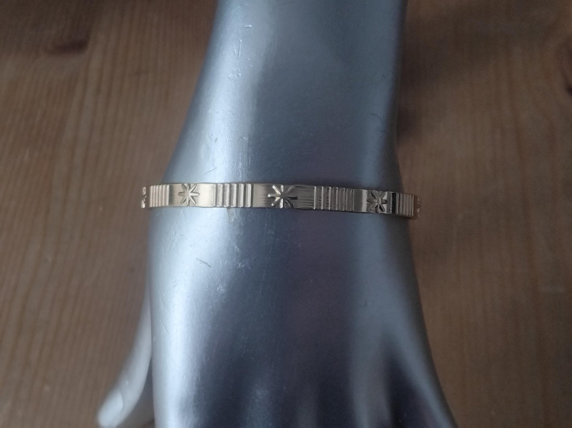 Handmade Engraved Gold Cuff Bracelet, Unisex Jewelry