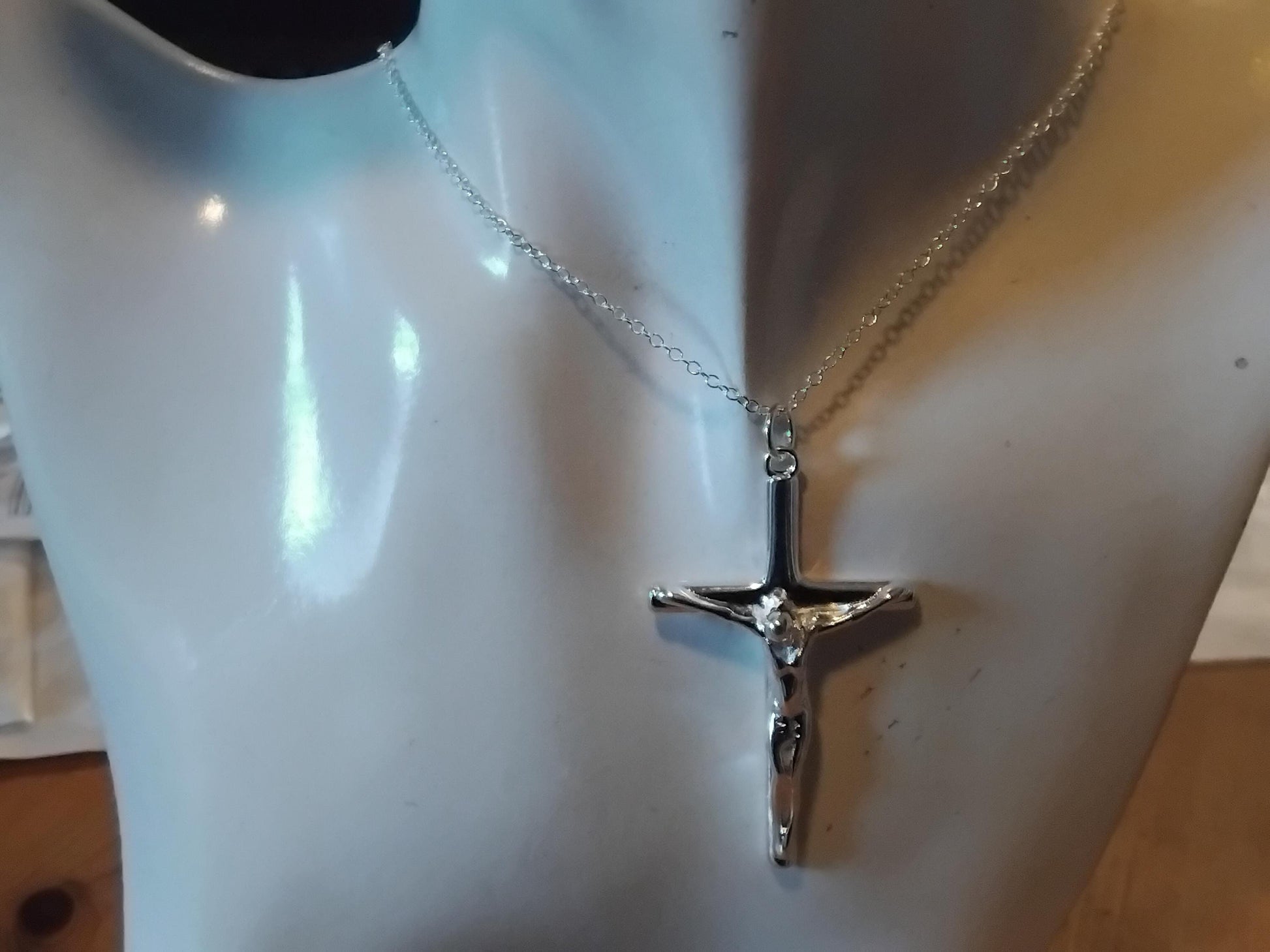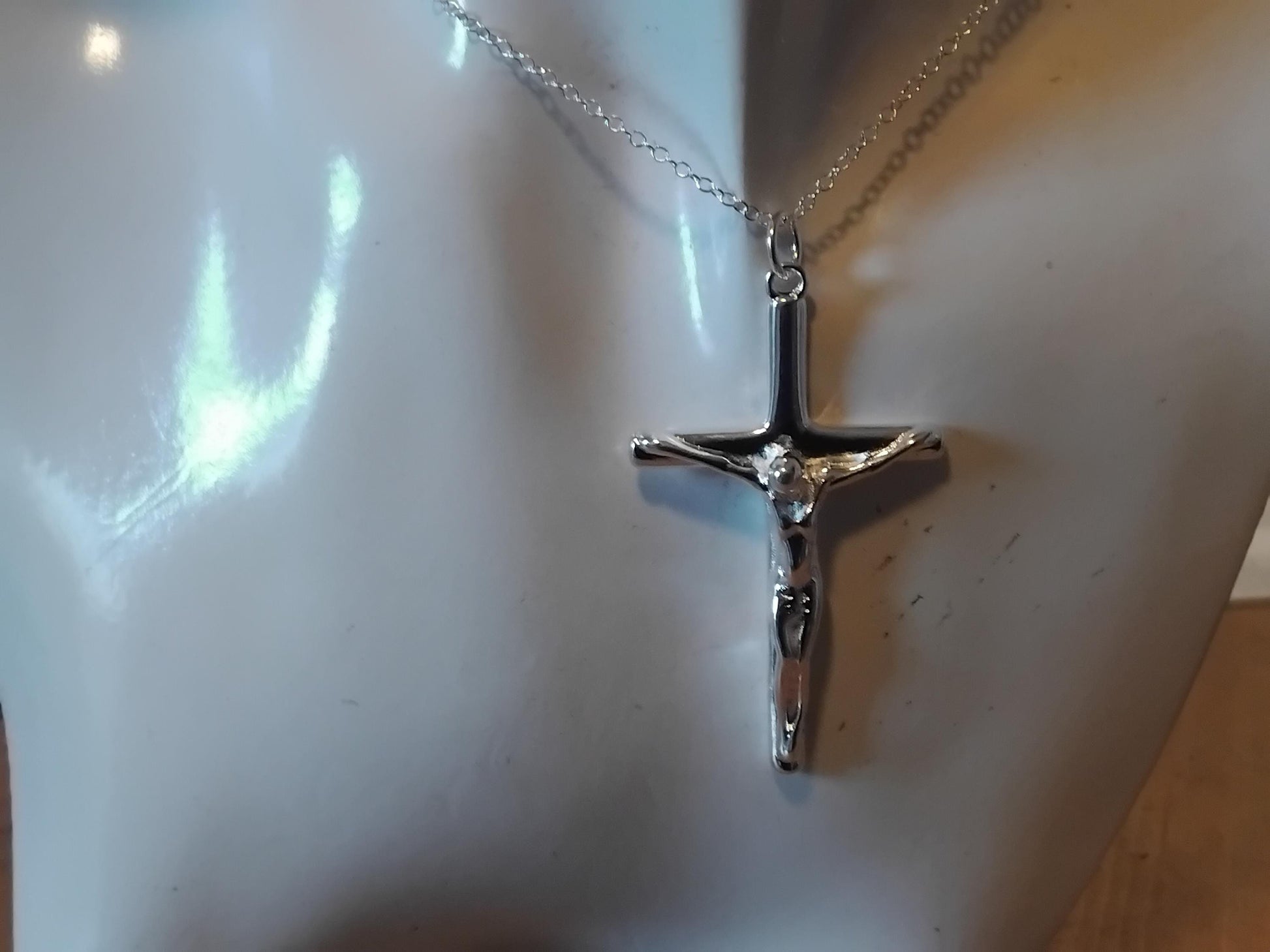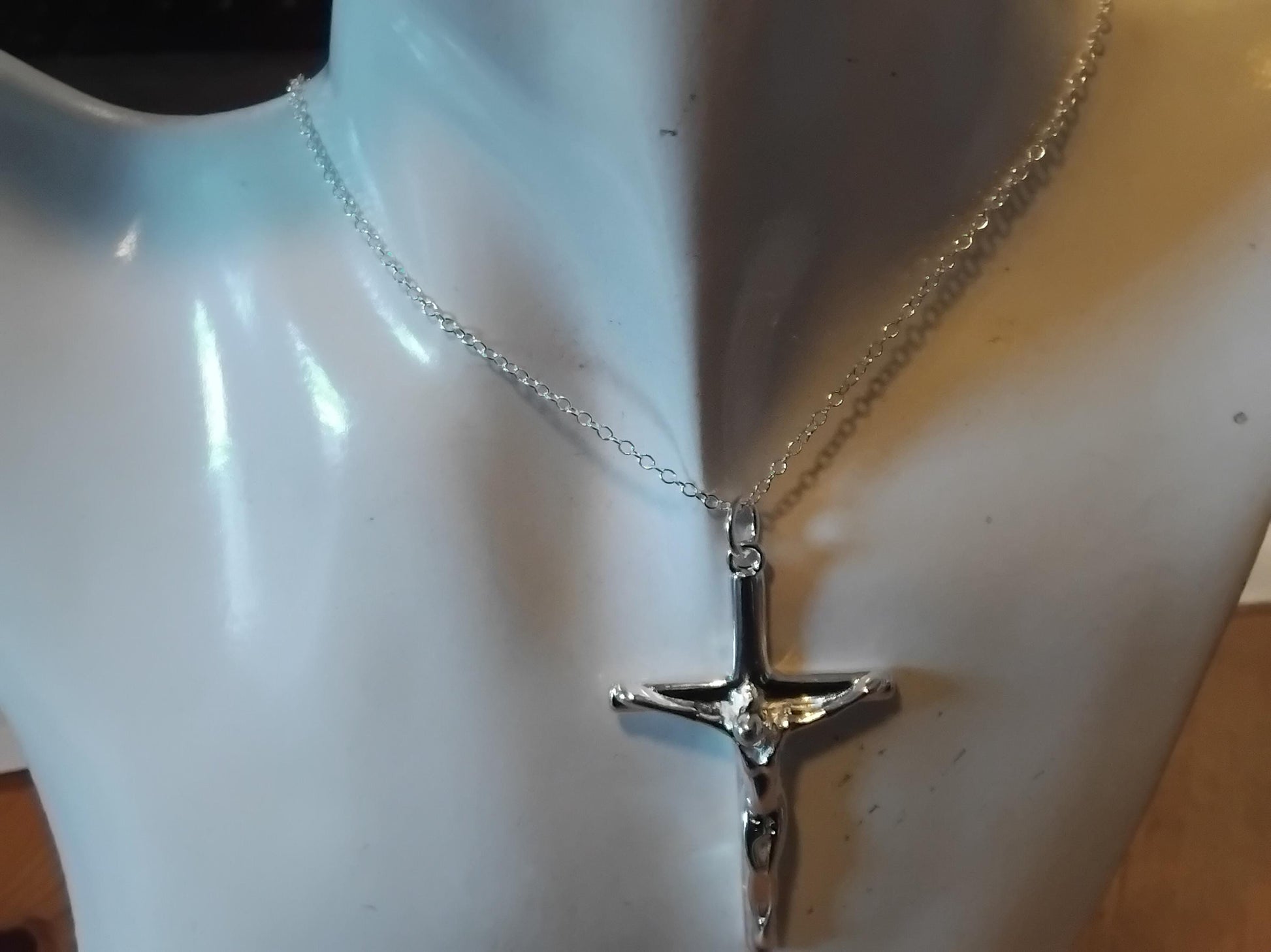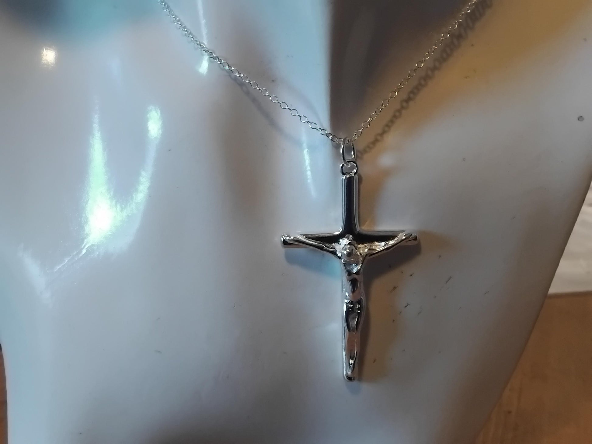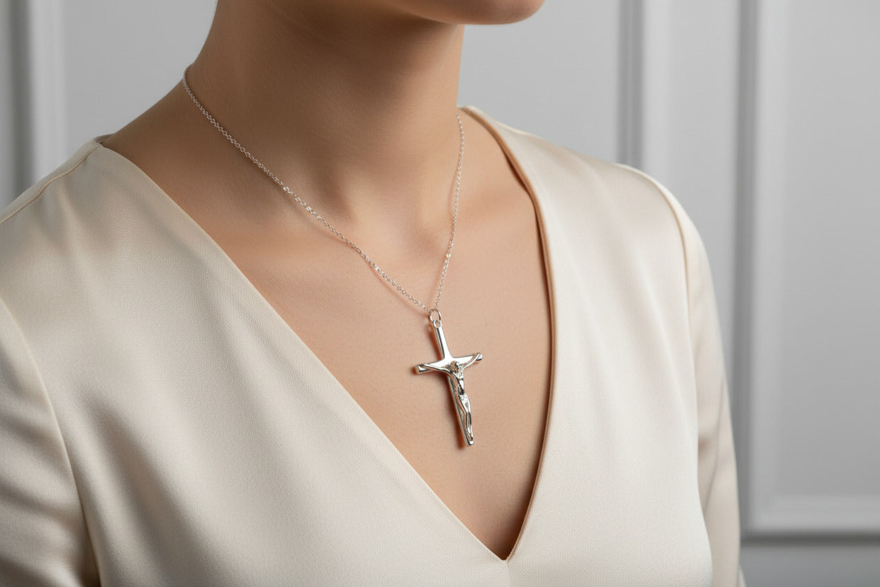 Silver Crucifix Necklace, Jesus Cross Pendant, First Communion Gift