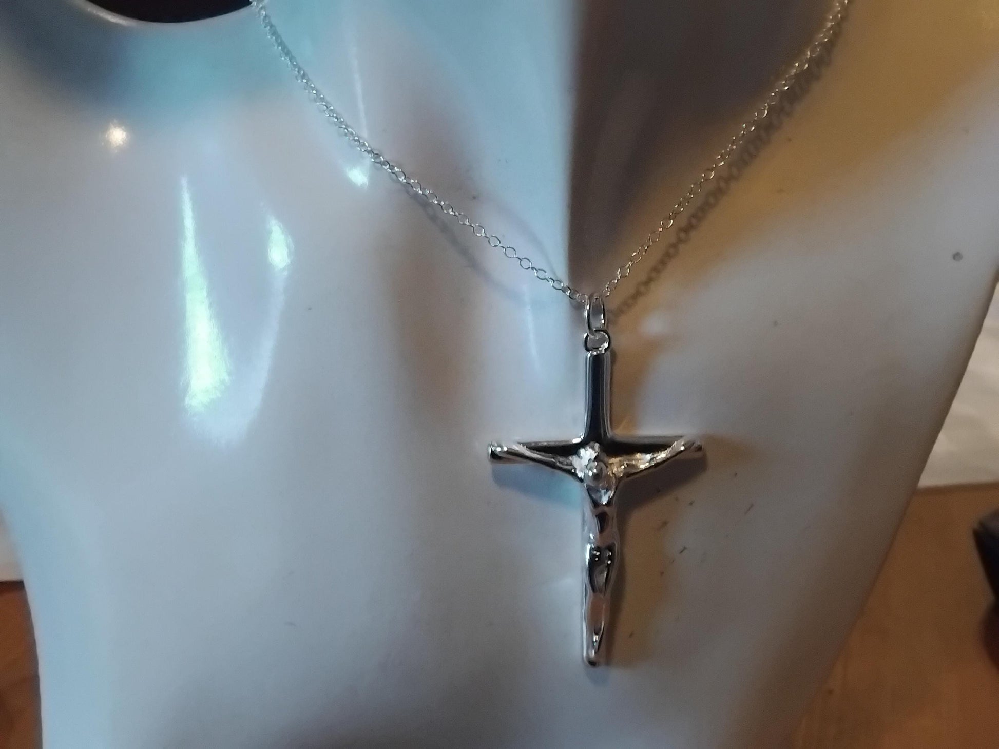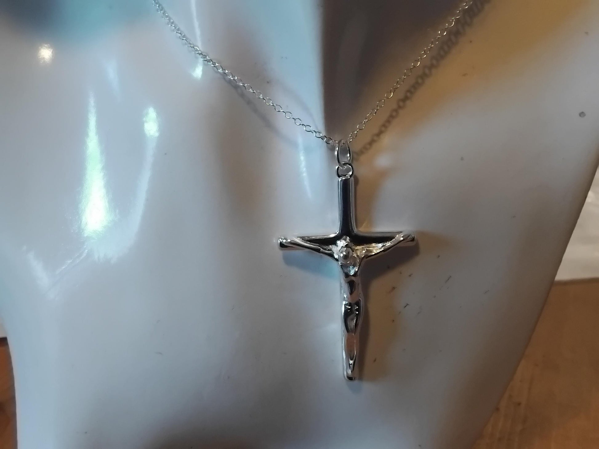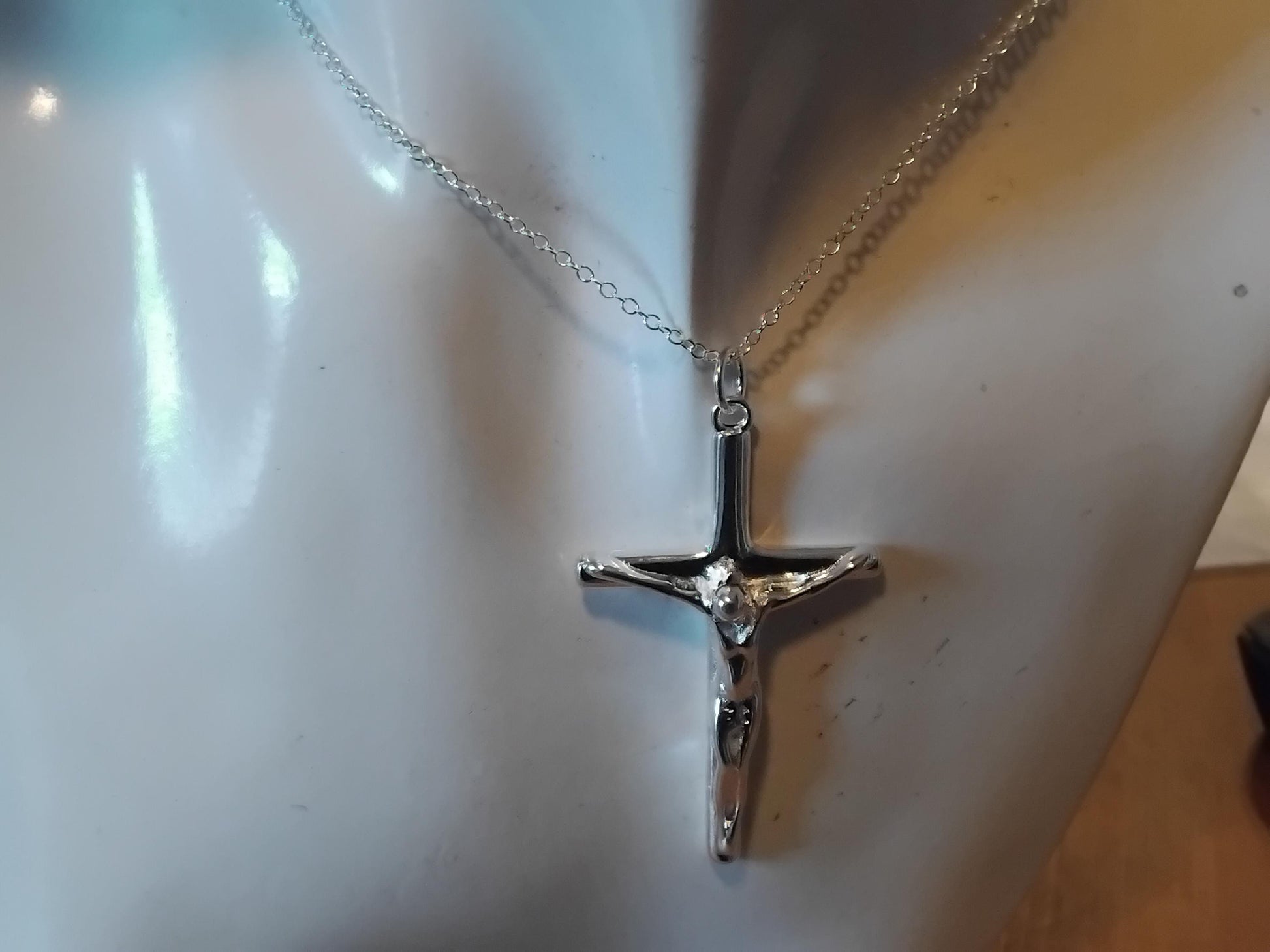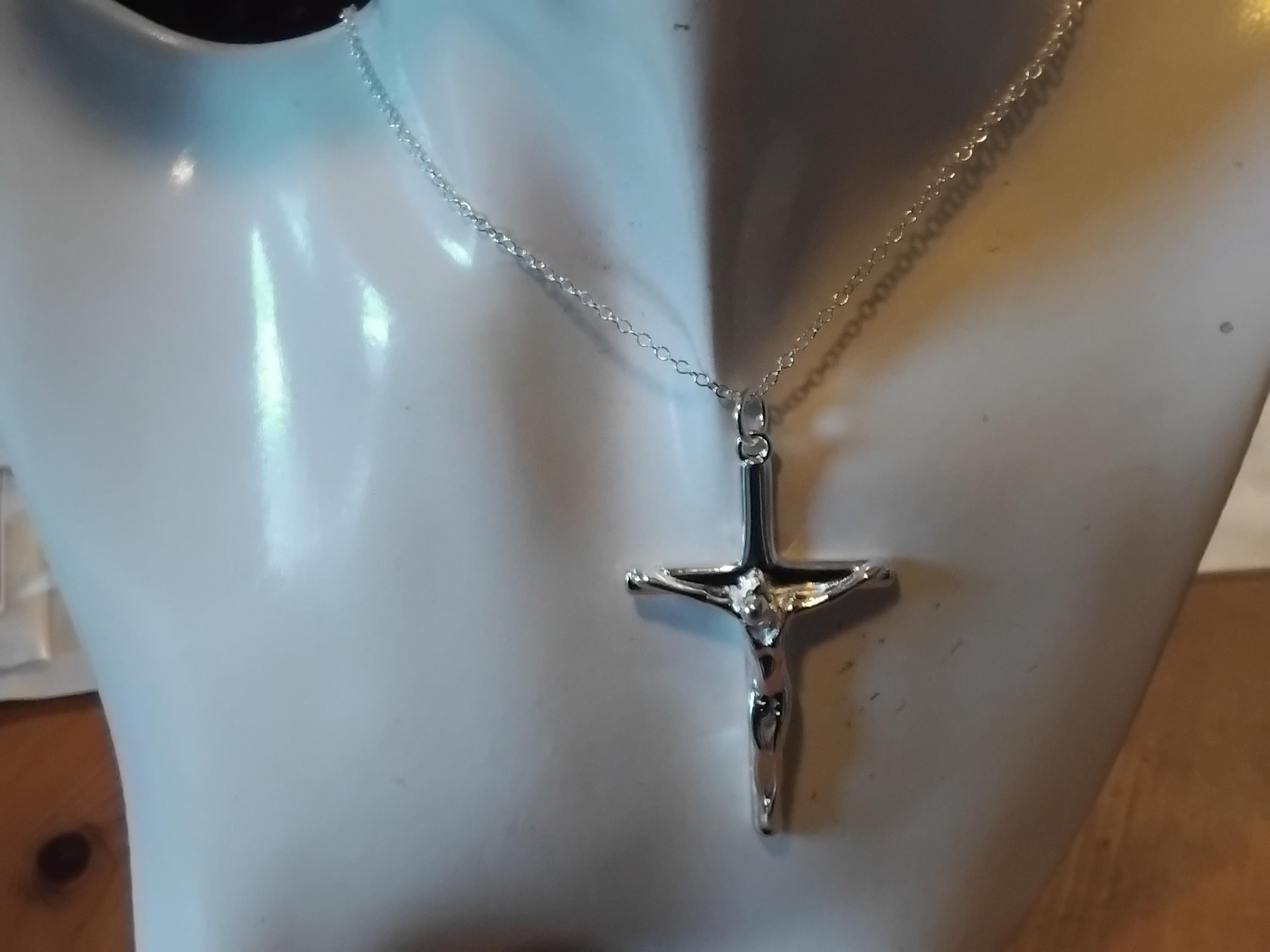 Silver Crucifix Necklace, Jesus Cross Pendant, First Communion Gift