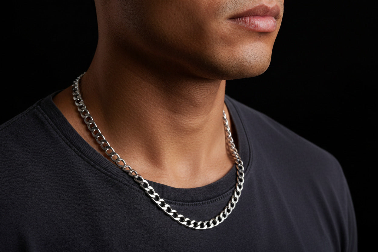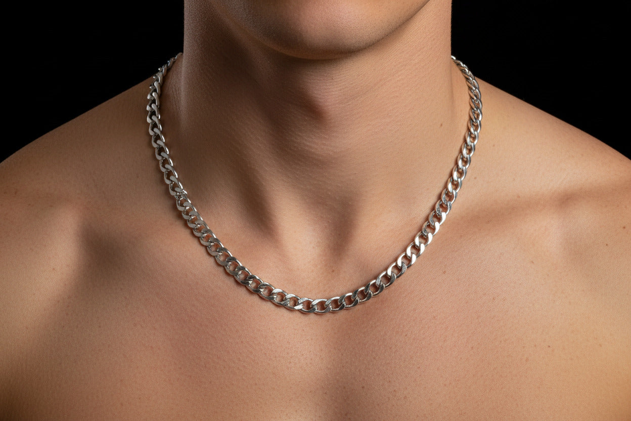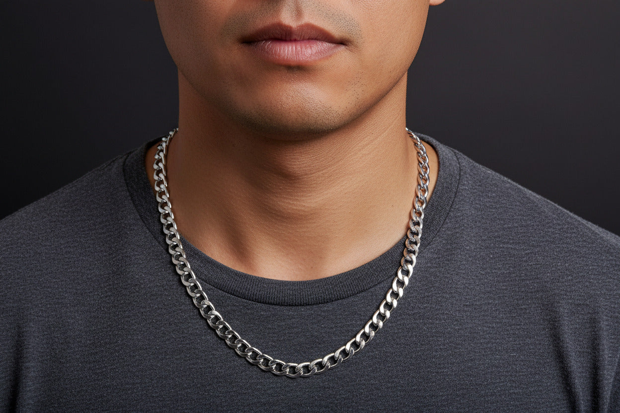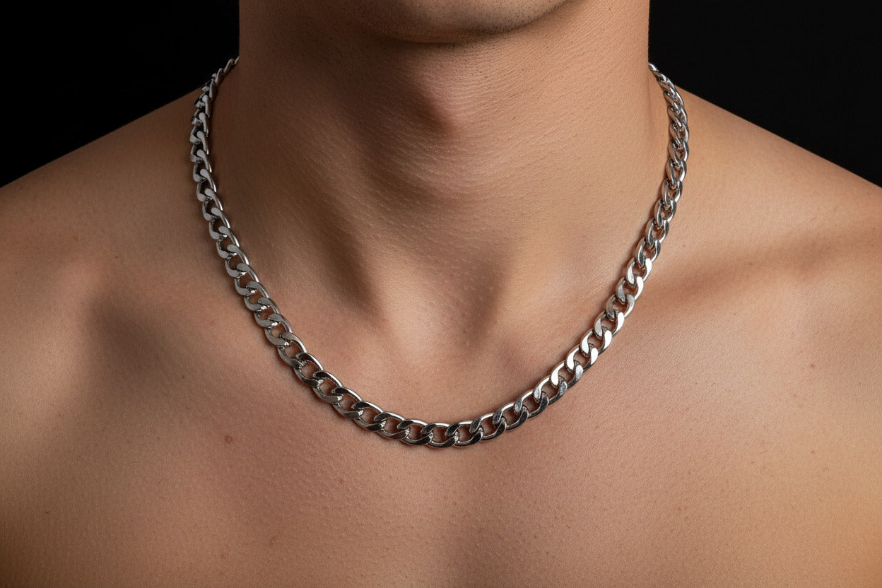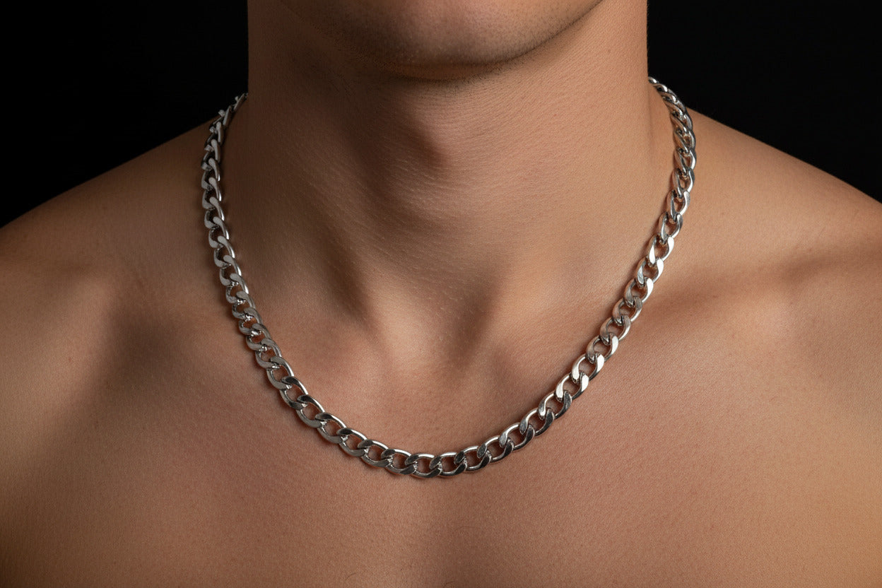 Silver Cuban Link Chain: Stainless Steel Men's Jewelry