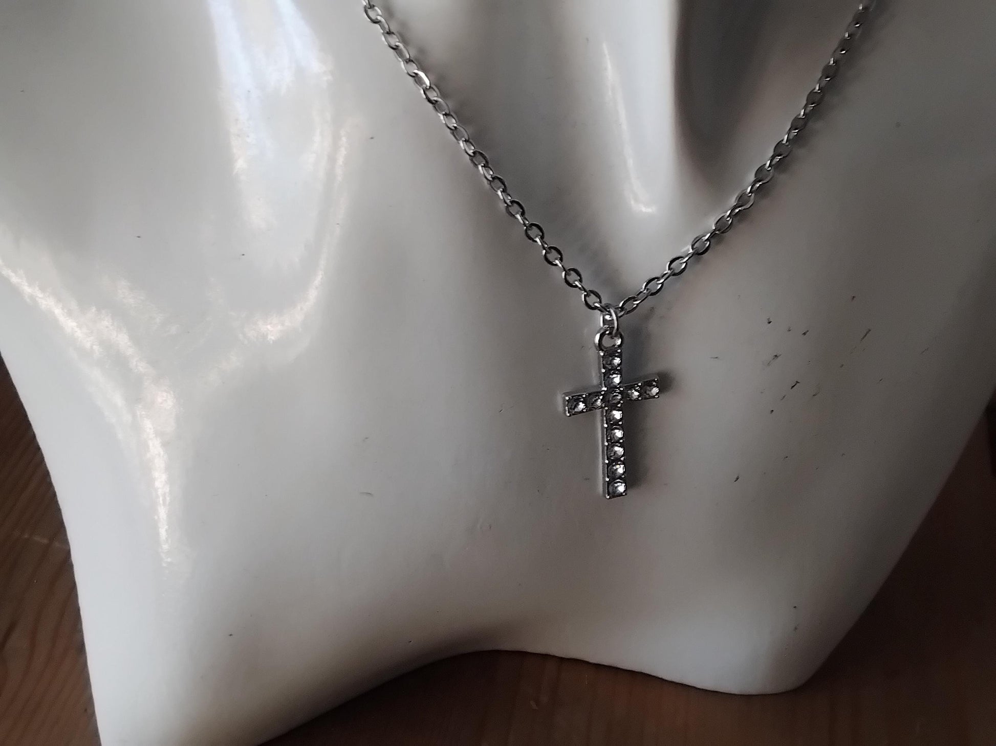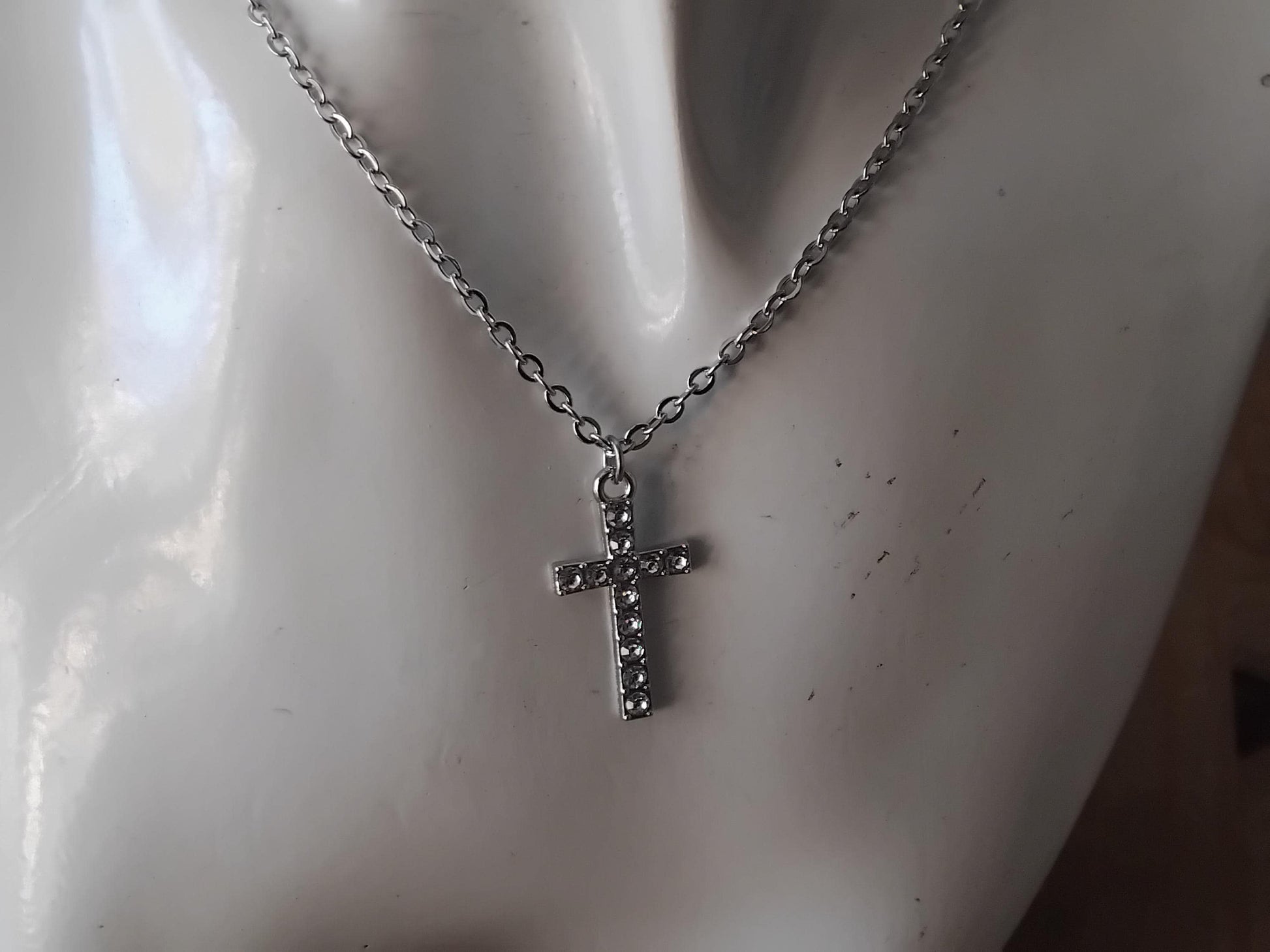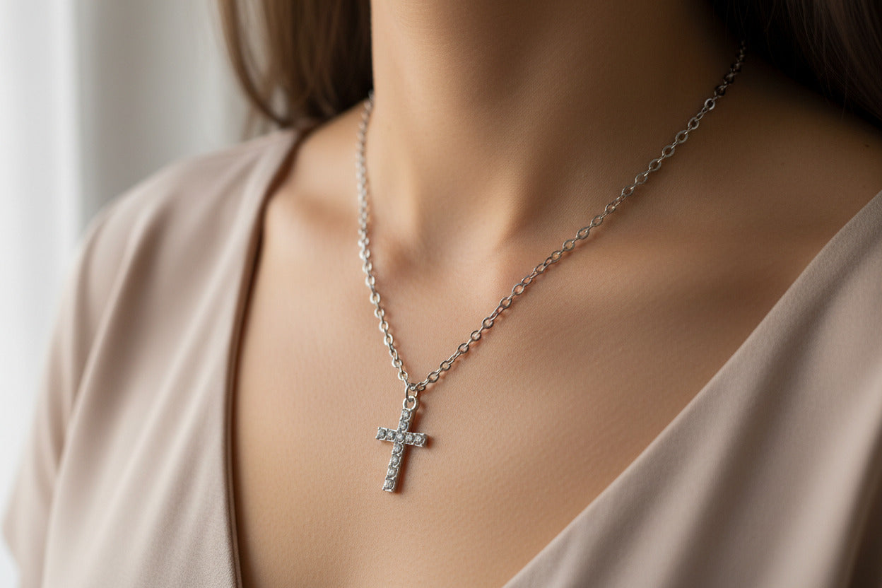 Silver-Toned Cross Pendant Necklace, Stainless Steel Chain, Christian Jewelry