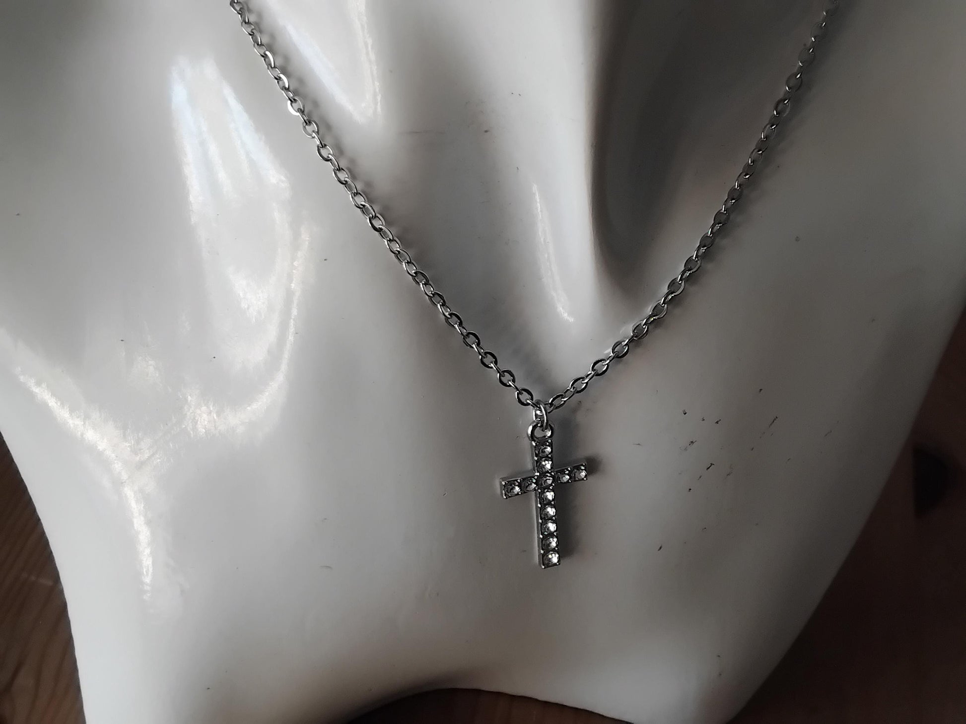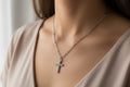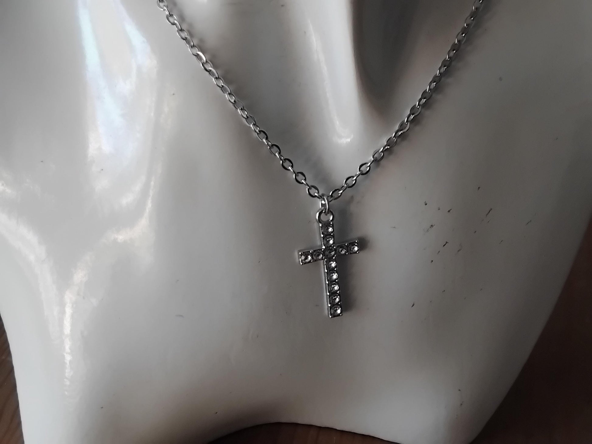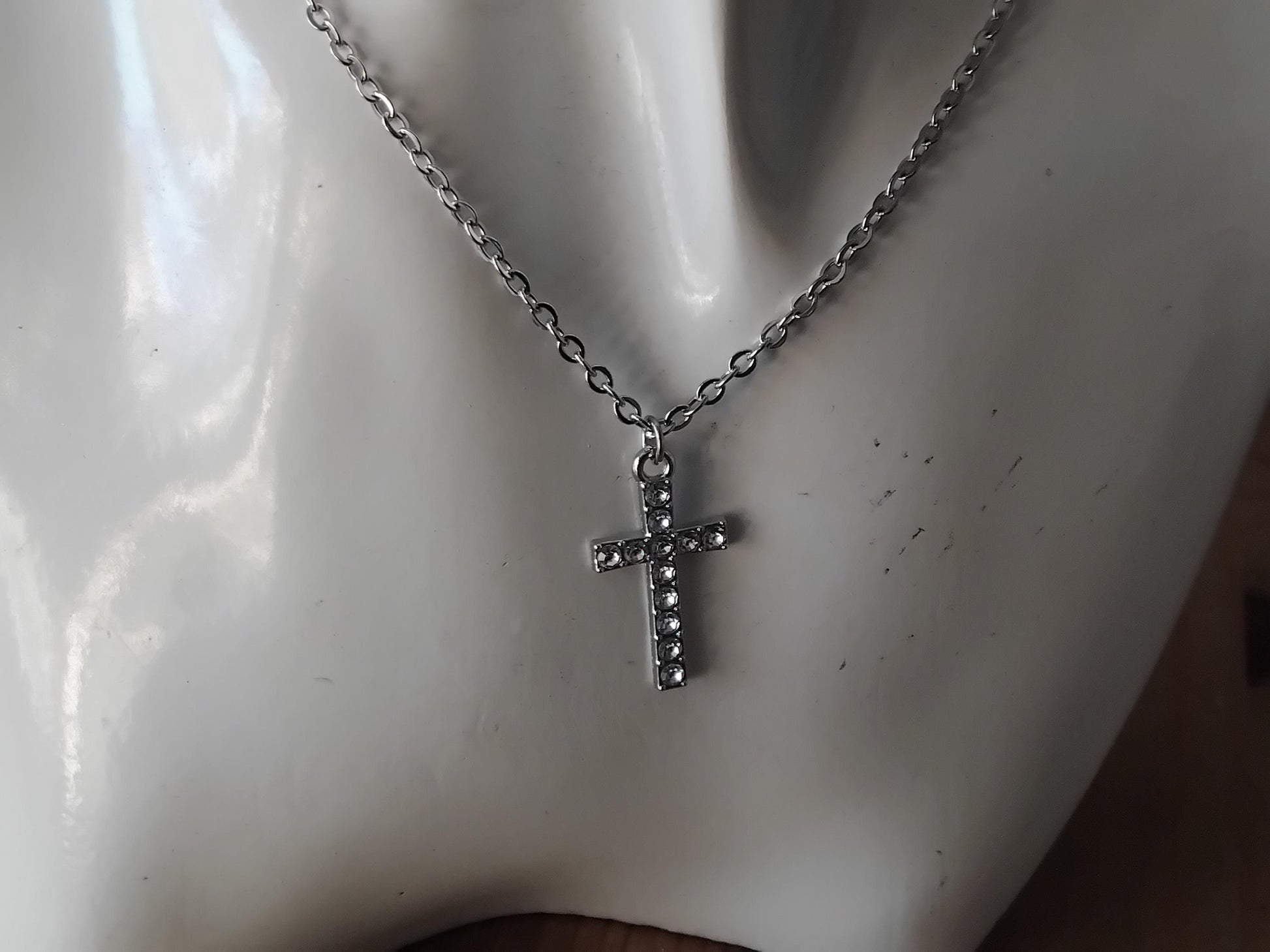 Silver-Toned Cross Pendant Necklace, Stainless Steel Chain, Christian Jewelry